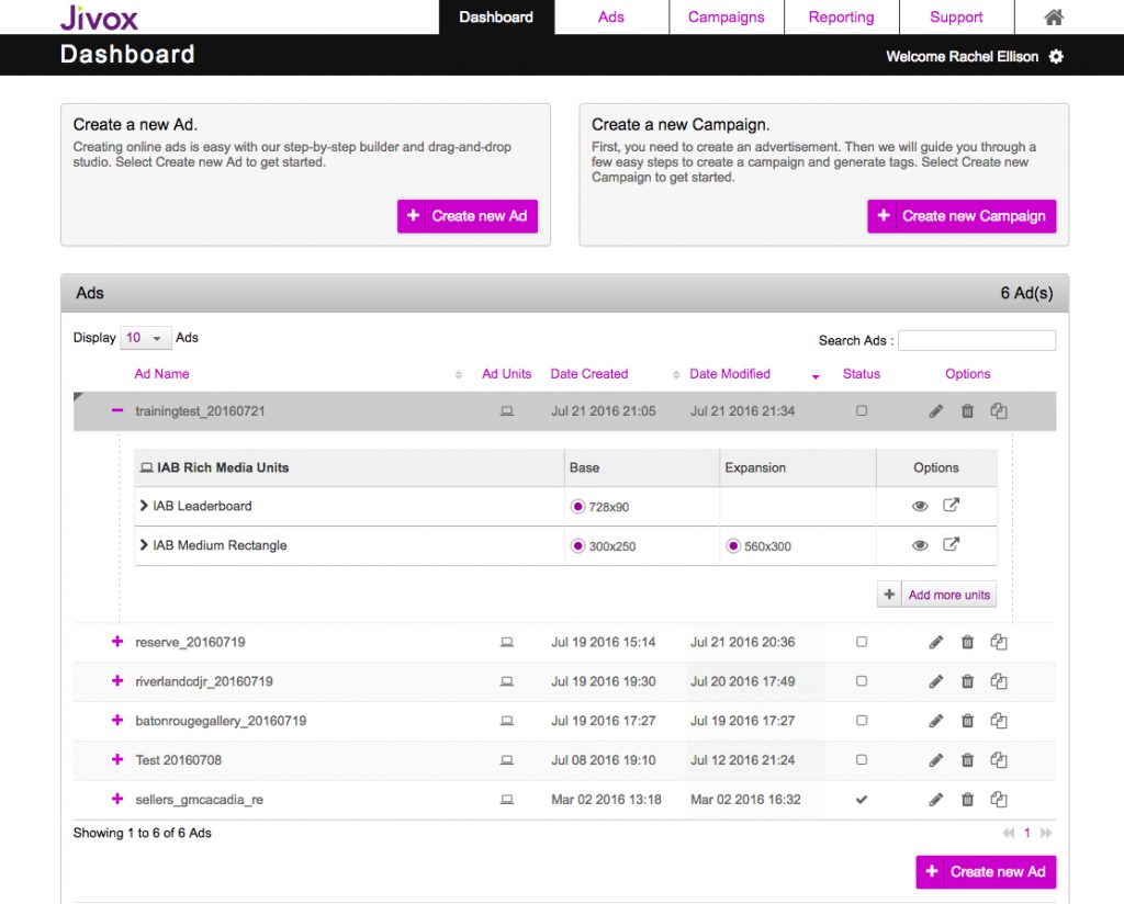 - Ads: each ad is one set of creative. Ads can have multiple ad unit sizes built within them.