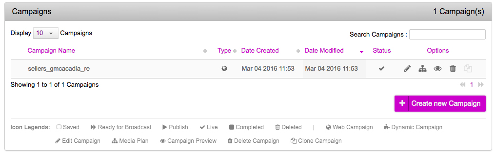 2. Campaigns: this is where ad tags are generated. Refer to Campaigns section for more detailed info.