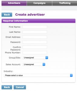 - In the Admin Panel, search for existing account by Advertiser or Email
